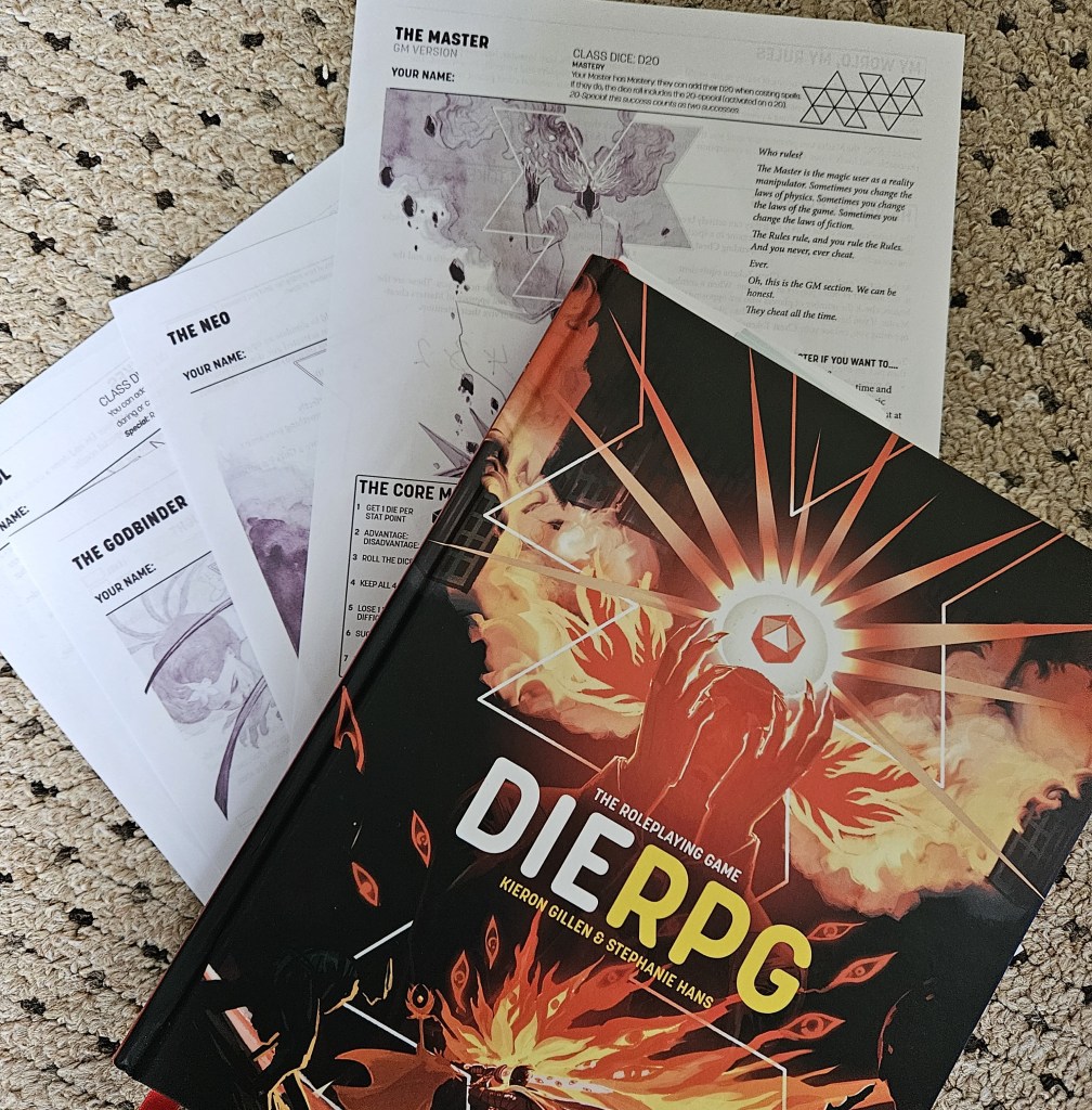 Like all my reviews, this is play-informed; I ran a one-shot of DIE for a group, and this is based on the play experience, not on reading the book. If you want a read-through, Iain McAllister from The Giant Brain, one of my players for the one-shot, has done one – so you can check that out here. Indeed, I’m going to try and not repeat stuff here – so if you want an overview of the system, or indeed the contents of the book, read that first!
